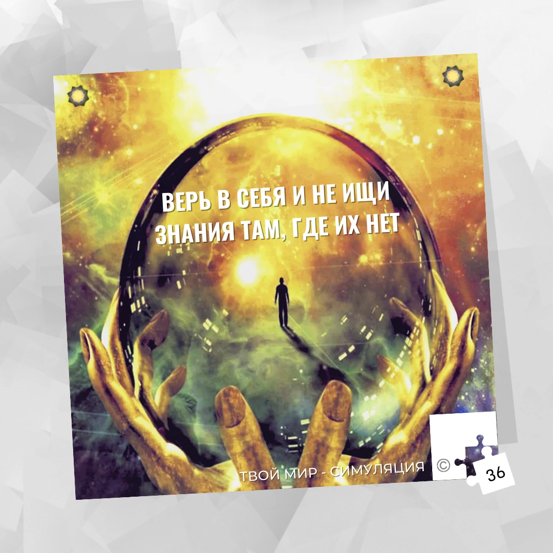 Почему вера в “уже есть”, а не вера в “будет”? — Будущего нет и эти данные симуляция отбрасывает, как неточные. Это происходит потому, что симуляция (реальность человека) формируется из пространства, где нет времени в человеческом понимании (все моменты одновременны), а для людей симуляция ежедневно создает новое движение из очередности событий. Если события нет в вашем доступном наборе из событий, то для него симуляция никак не может создать движение в вашей жизни.